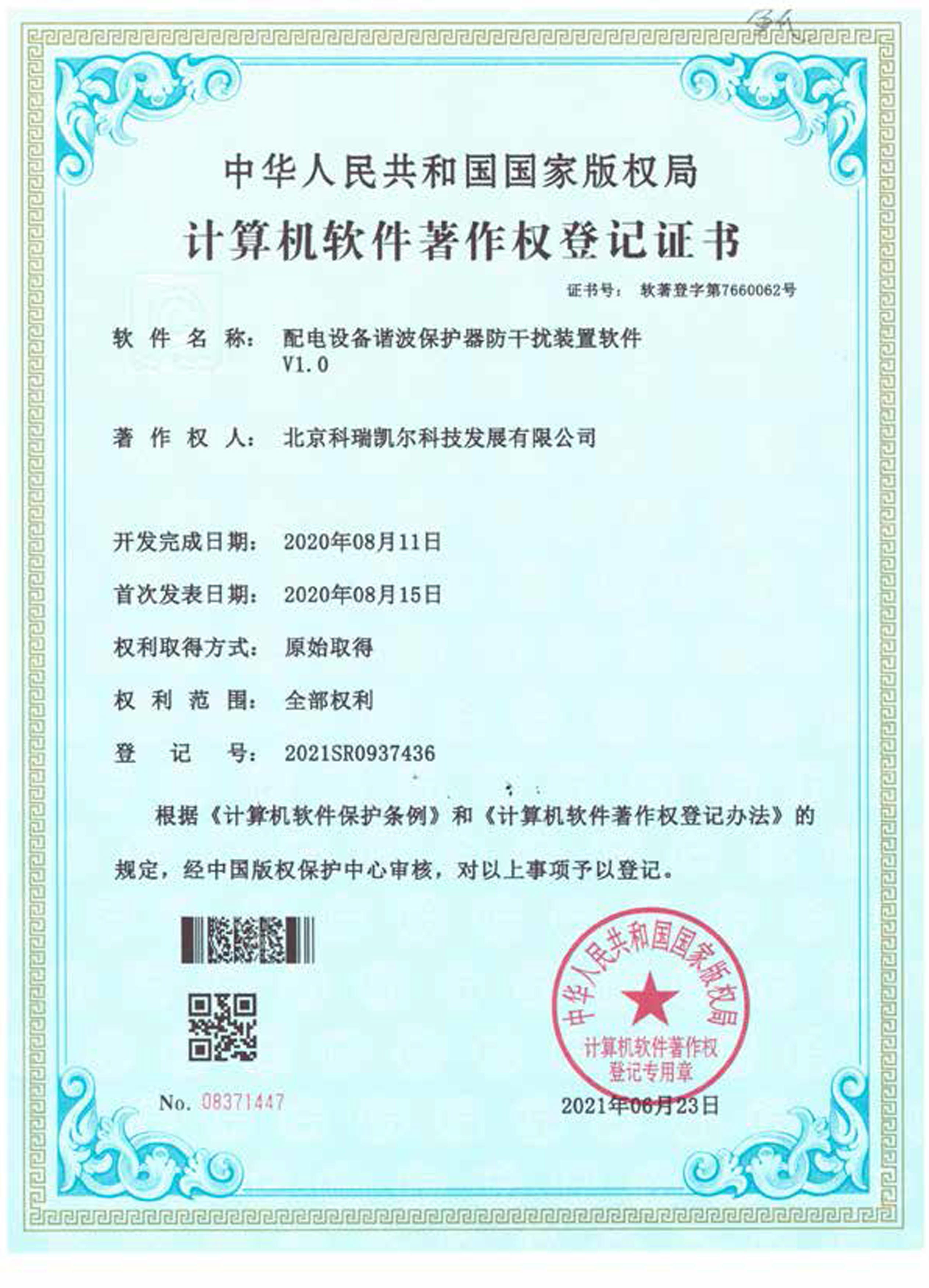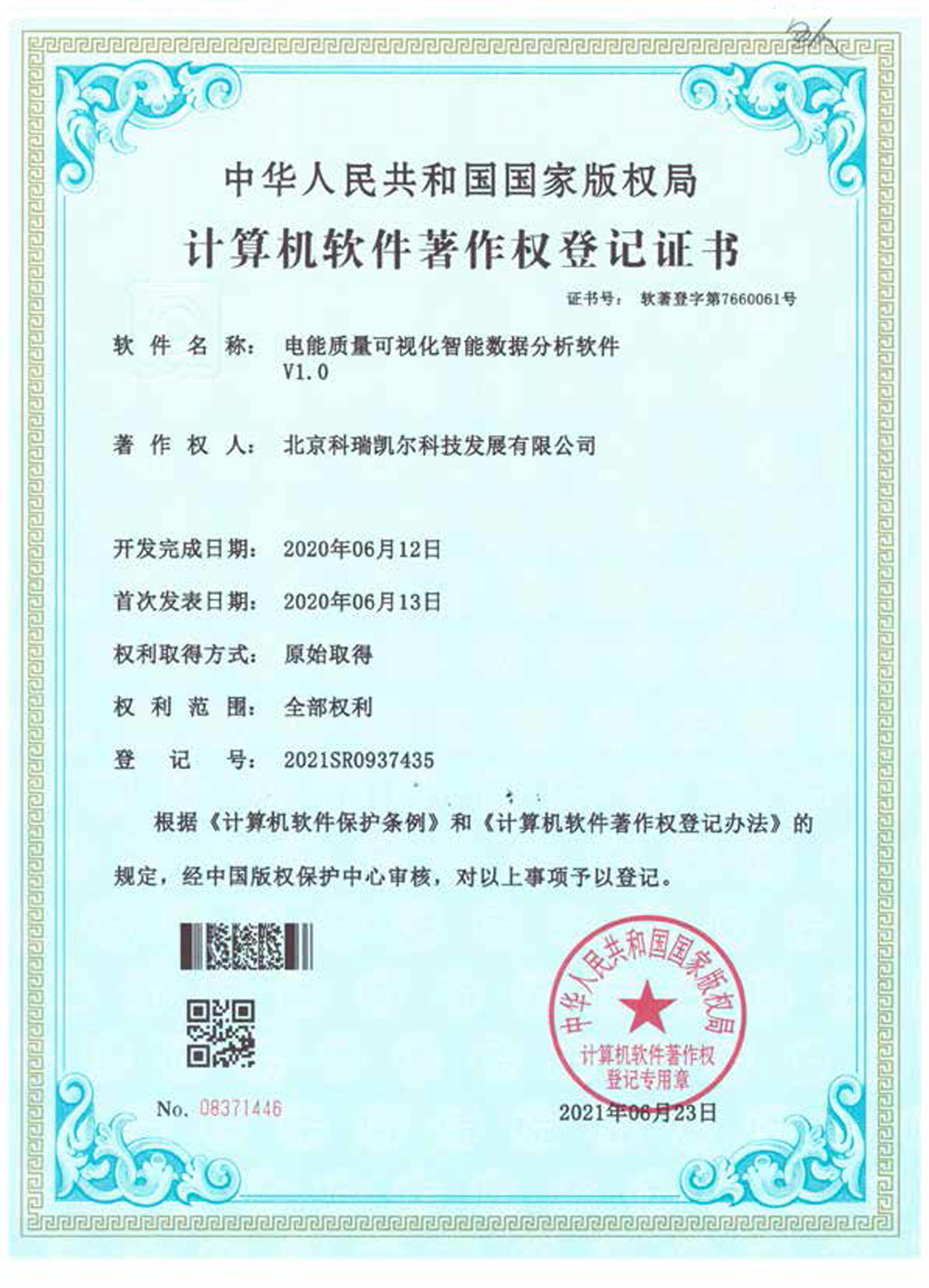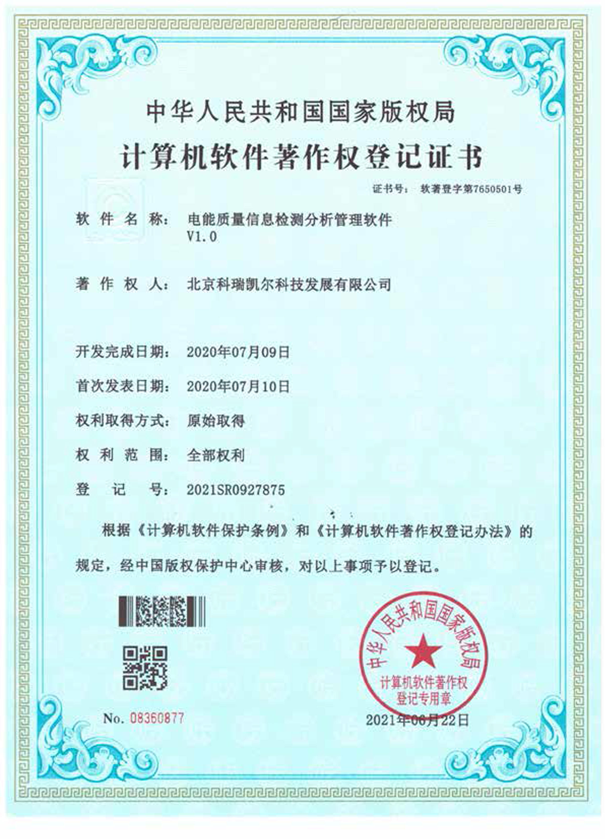 计算机软件著作权登记证书
