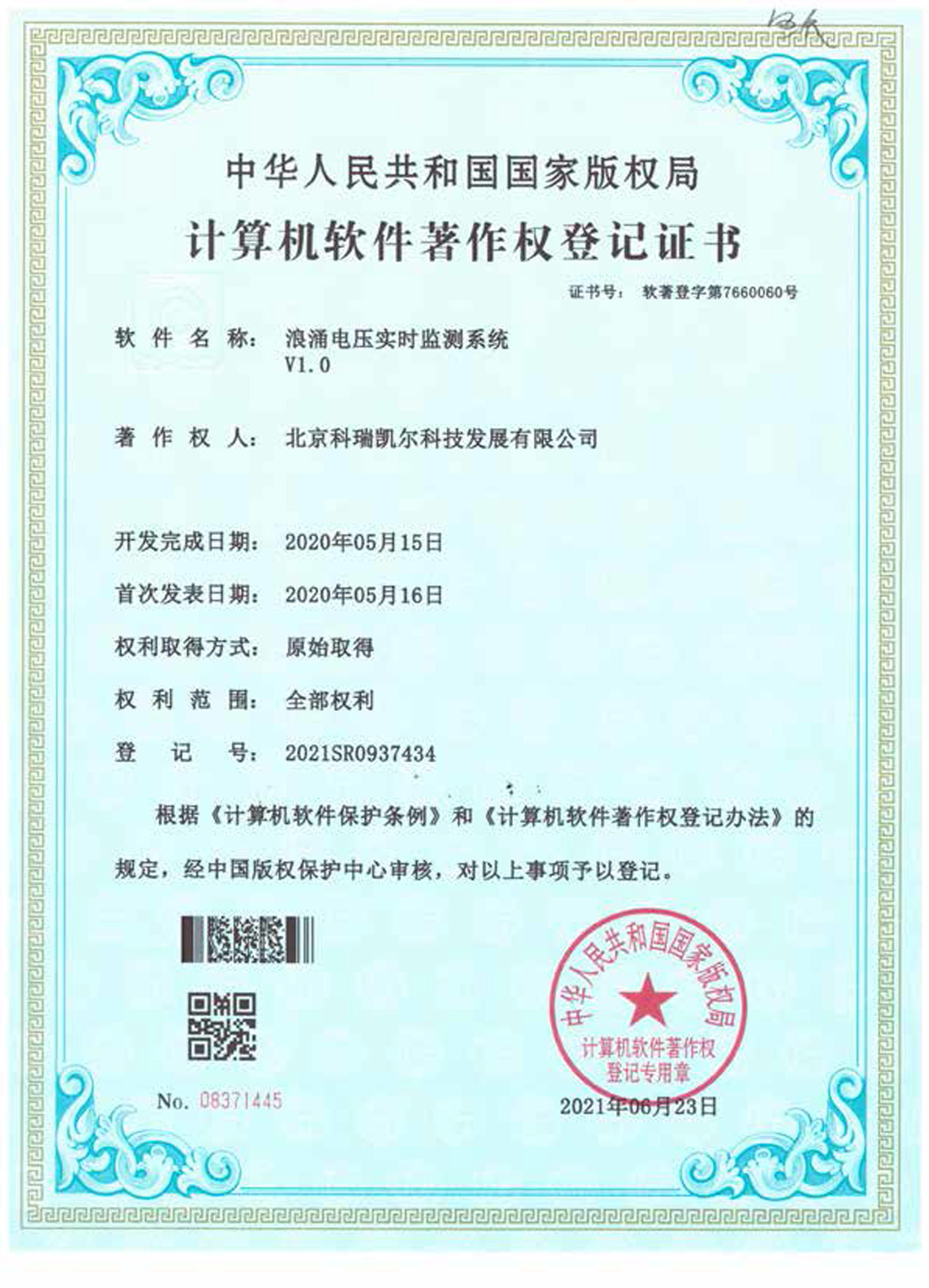 计算机软件著作权登记证书
